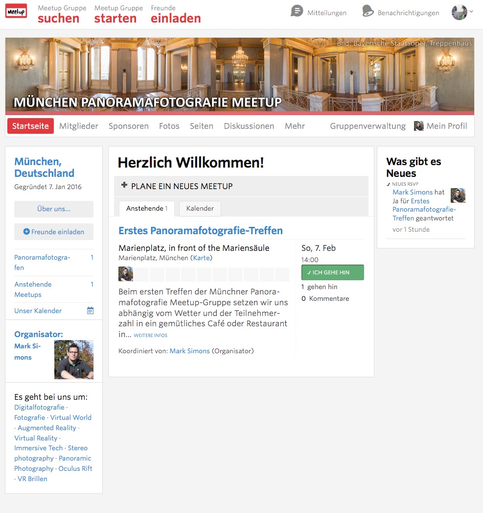 Um die uralte Tradition regelmäßiger Usertreffen wieder aufleben zu lassen habe ich bei Meetup.com eine Gruppe erstellt die Panoramafotografen aus dem Raum München ansprechen soll.