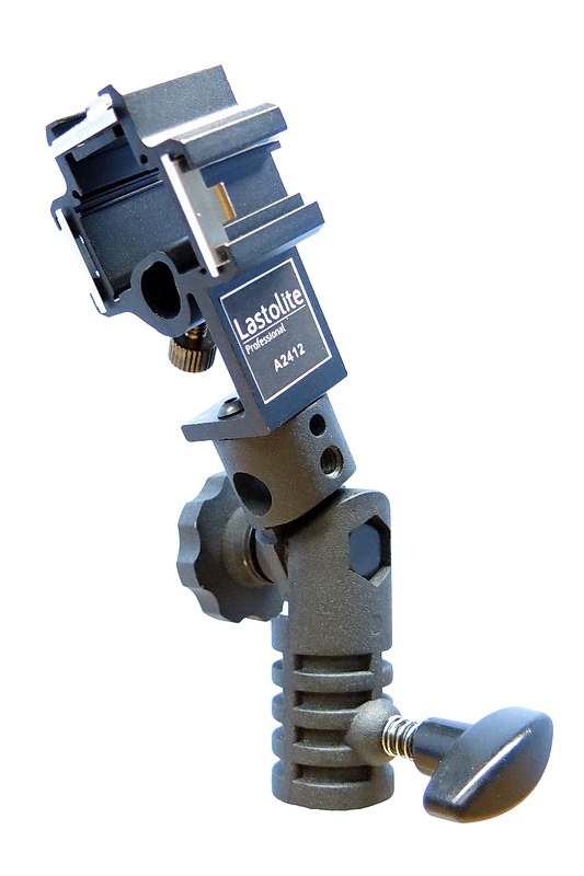 Anstatt (dem relativ schweren) NN3 ist es besser, wenn man sich einen L-Winkel macht, der so geformt und gebohrt ist, dass er die Kamera samt Fisheye und Funkauslöser im Schwerpunkt hält. Die Möglichkeit für einen Höhenschwenk ist damit prinzipiell auch möglich.