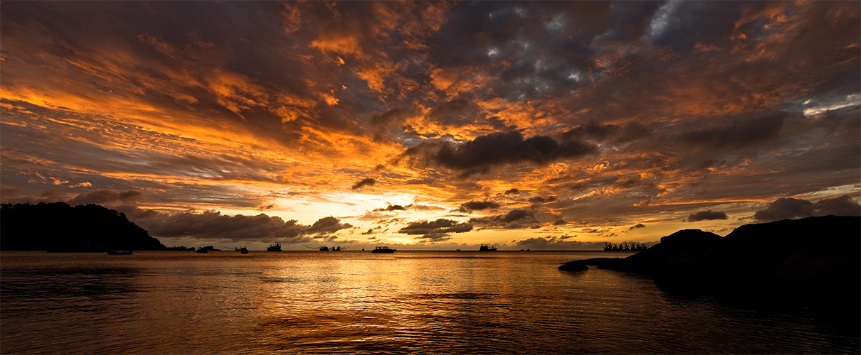 Es kommt natürlich immer auf die Komposition eines Sonnenauf- oder Untergangs an;-) Es kann allerdings auch ein sehr schönes Bild ergeben, auf dem "nur" der reine Sonnenauf-/Untergang zu sehen ist. Wenn z.B. ein herlices Farbenspiel vorhanden ist. Hier würde ein Vordergrundobjekt viel zu stark von so einem "Hauptmotiv" ablenken