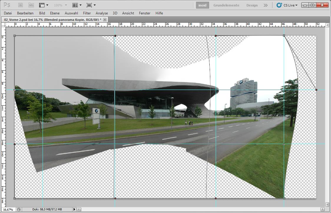 Ich verzerre das Bild dann in Photoshop, aber kann das nicht auch PtGui mit den richtigen Einstellungen gleich machen?
