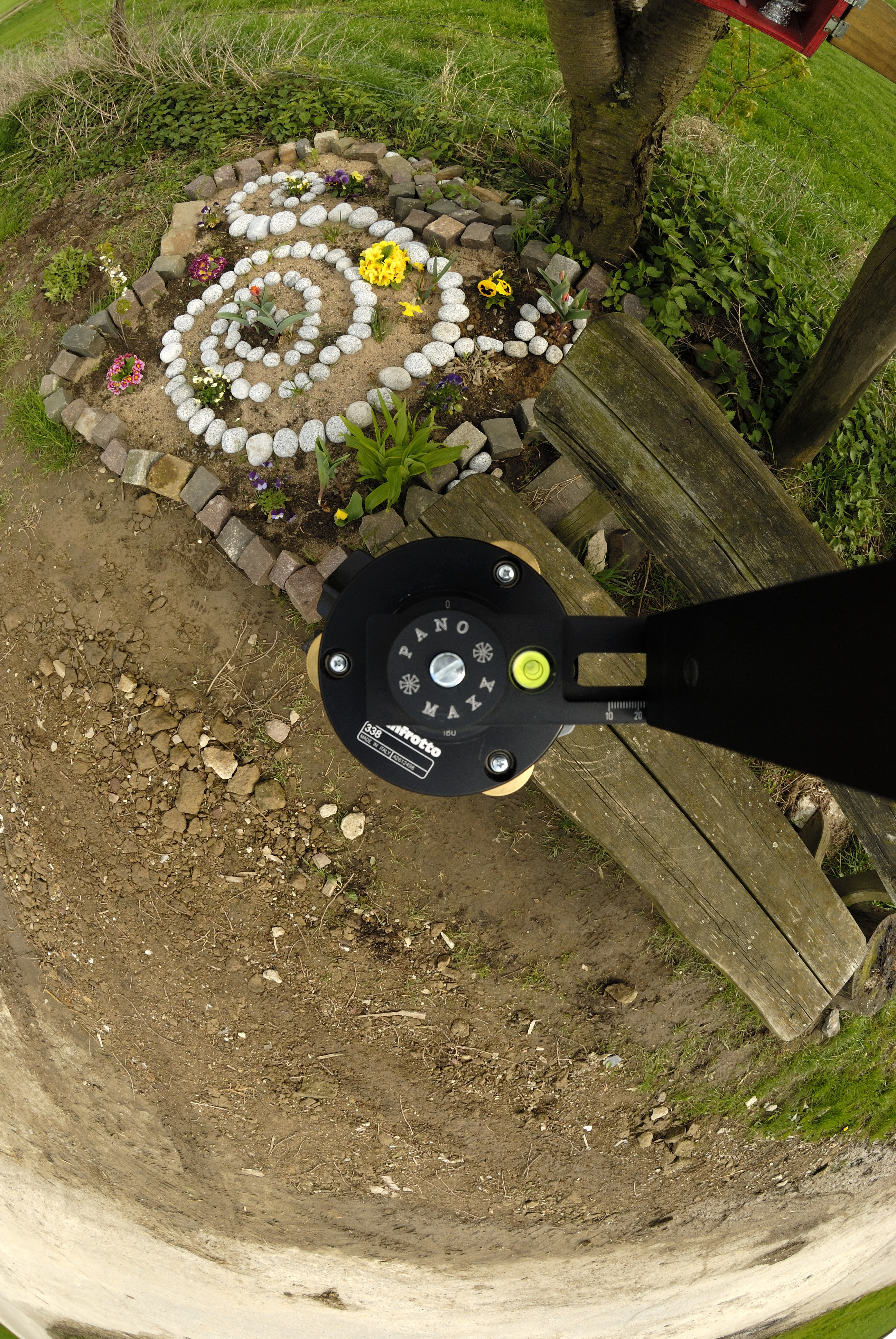 Mein Nadirbild gibt es hier. NN5 mit Standardrotator auf Manfrotto MDEVE. Die Aufnahmehöhe beträgt ca. 1,4 m. Die Mittelsäule ist 20 cm ausgefahren. er Durchmesser des Rotators betragt ca. 55 mm.