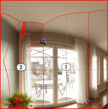 Du hast vermutlich in beiden Bildern grün maskiert und PTgui genötigt, beide Bilder zu verwenden. Deswegen gibt es dort so viele Bildgrenzen- und überschneidungen.