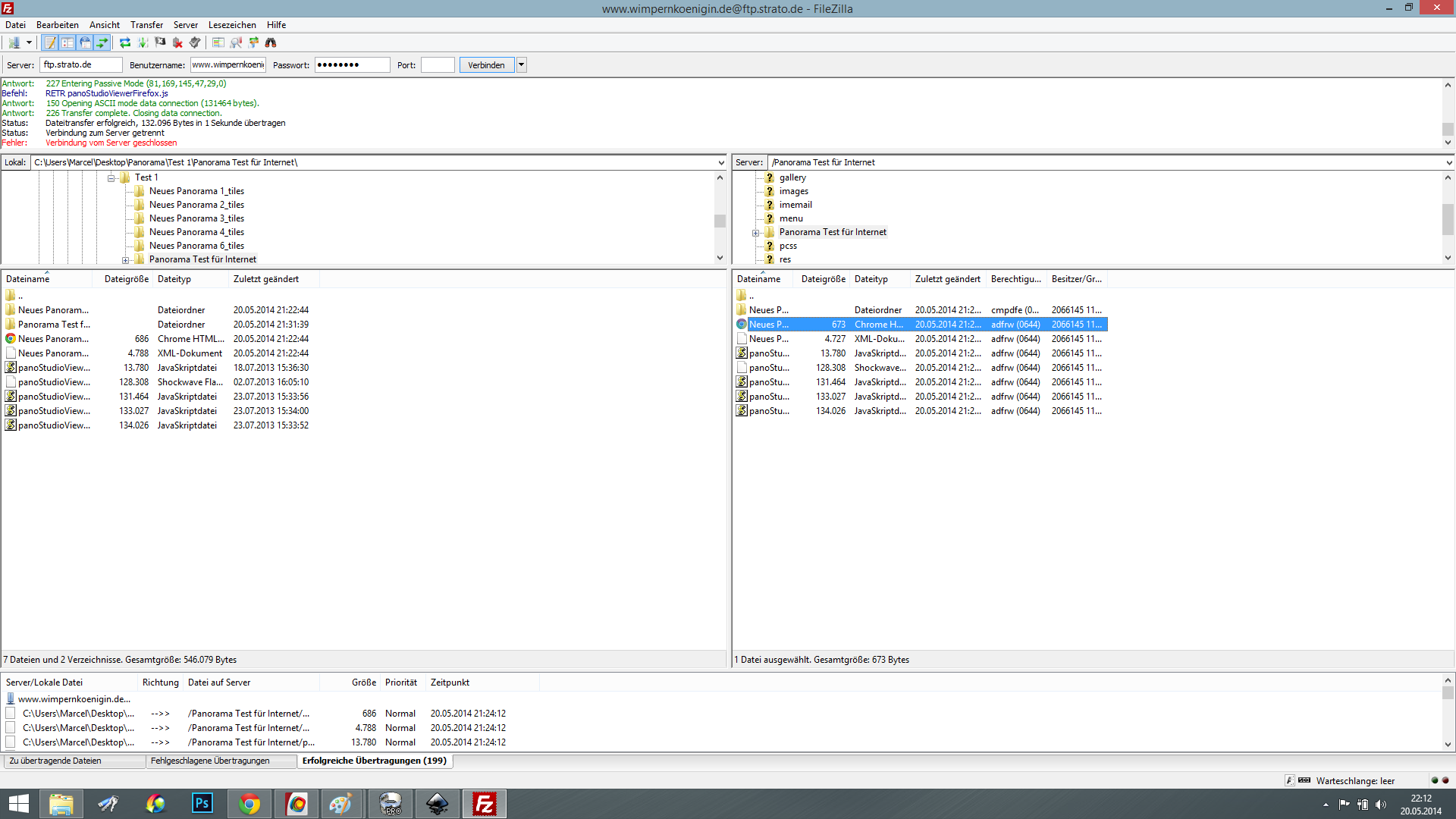 Heute Morgen habe ich bereits ein Pano. zu Hause fotografiert und erstellt. Nun möchte ich dieses gern auf meiner Website integrieren....ich hab allerdings keine Ahnung wie...folgende Info kam von P-Studio. Im Moment versteh ich nur Bahnhof..ich habe es allerdings schon geschafft mir filezilla zu installieren und mit Strato zu verbinden...HELP