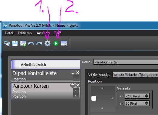 habe ein merkwürdiges Problem. Ich habe in Panotour Pro 2.3 eine komplette Tour gebaut, alles funtioniert wunderbar, wenn ich in der Software nach dem Speichern in der Symbolleiste den Punkt "letzte Tour anschauen" anklicke. Drei verschiedene Grundrisse, für jede Ebene einzeln, werden in Firefox angezeigt.