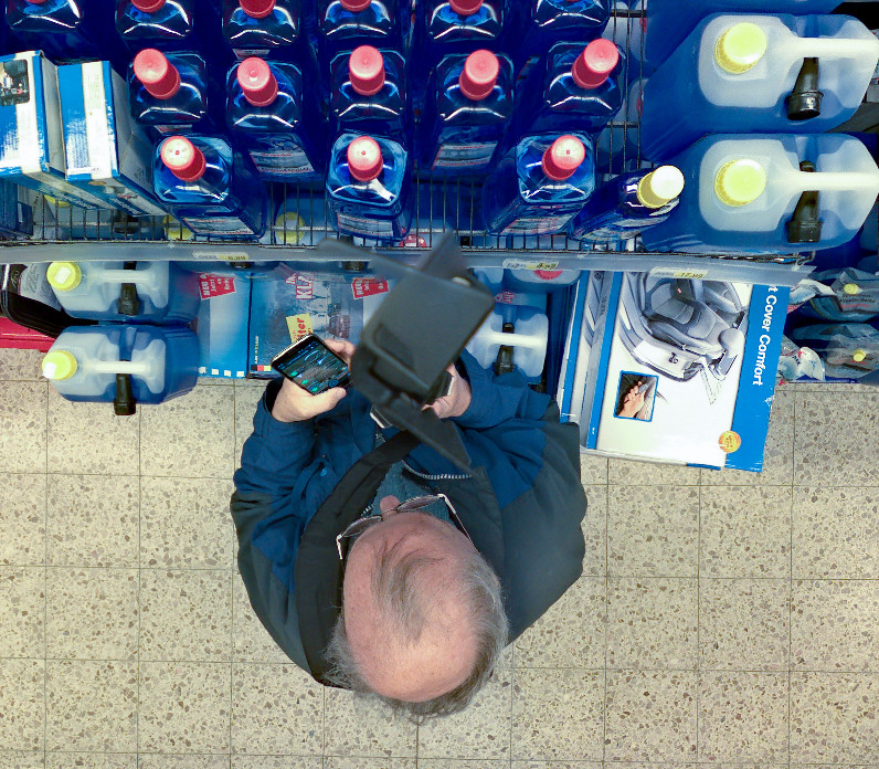 Bei anderen habe ich versucht, hinter einem Regal in Deckung zu gehen. Das letzte habe ich mit hochgehaltenem Stativ geschossen und ein bisschen am Bodenbild kopiert, eingesetzt, verzerrt, radiert, geklont und was es noch so gibt.