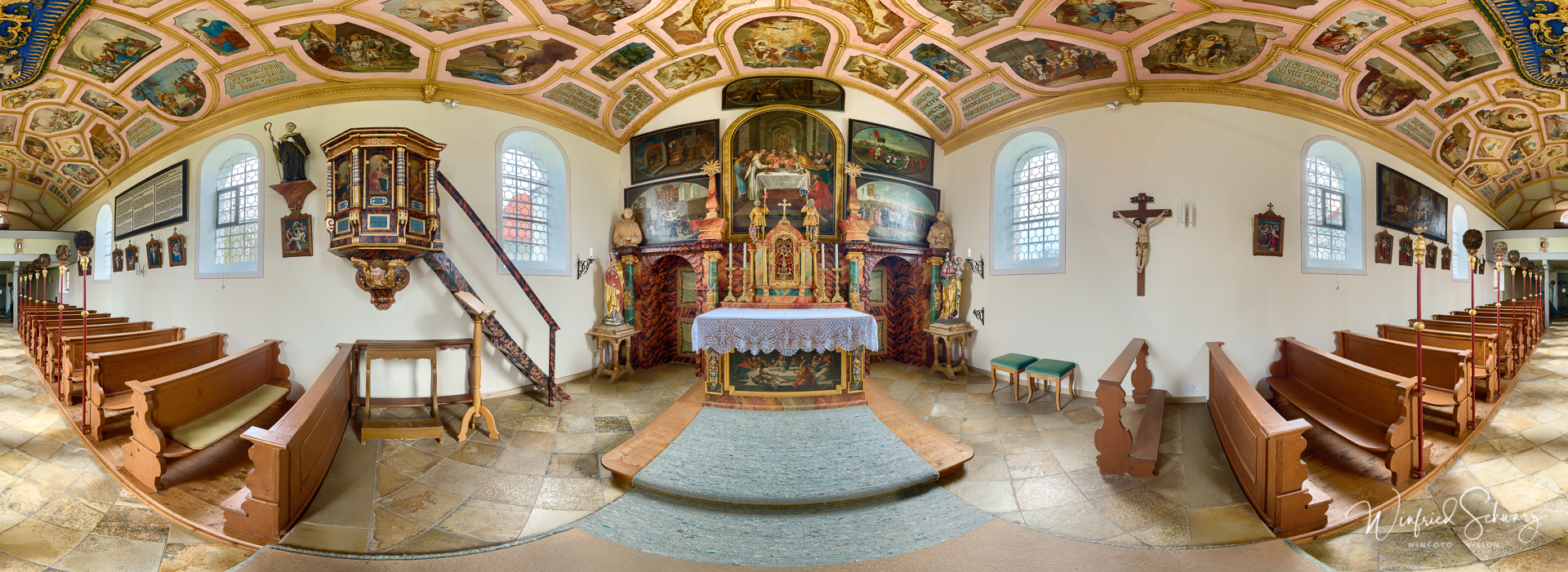 Einige Panos habe ich dann in Belichtungsreihen aufgenommen, habe aber beim Stitchen meistens nur EINE der gut entwickelten RAWs gebraucht. Seitdem belasse ich es in 98% der Fälle ohne HDR. Sollte es in den Bildern an wenigen Stellen mit der Dynamik etwas eng werden, stört mich das fast nie, weil ich mit meinen zweckgebundenen Panoramen keinen Wettbewerb gewinnen, sondern nur Informationen dokumentieren will.