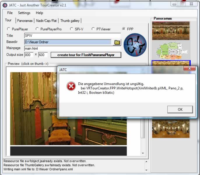 Ich lade die Panos und gebe nur 2 Hotspot a. und bekomme beim "Erzeugen der Tour"