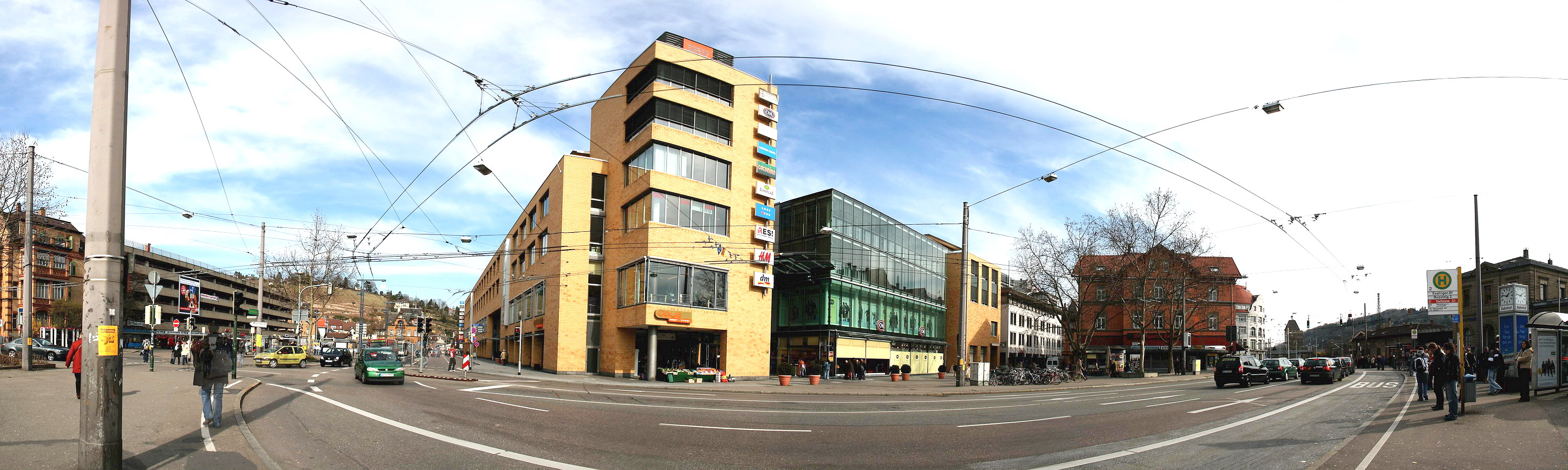 Das Panorama ist in Esslingen am Bahnhofsvorplatz gegenüber dem Einkaufzentrum *DAS ES* ohne Hilfsmittel nur