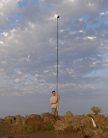 Ja, so wie es Martin dort anscheinend macht, geht es. Wahrscheinlich irgendwo aufgelegt und das untere Ende beschwert. Wir haben es "freihand" zu zweit versucht. Stange waagerecht gehalten und ca. 4 m über eine Art Klippe hinausgehalten. Man hat dann plötzlich einen 6m Gummistab in den Händen, mit einem 100kg Gewicht am Ende. Dann irgendwie und ungefähr die Position halten, Kabelauslöser drücken und einigermaßen genau 90 Grad weiterdrehen. Fast unmöglich. Möchte ich nicht nochmal machen. Irgendwo aufgelegt und beschwert, ja das sollte funktionieren. Man sollte aber aufpassen, nicht z.B. allzu scharfkantige Steine zur Beschwerung zu nehmen (und es erfordert schon einiges an Gewicht), da die Rohre aus Fiberglas recht dünn und empfindlich sind. Kein Vergleich zu einem dicken Surfmast.