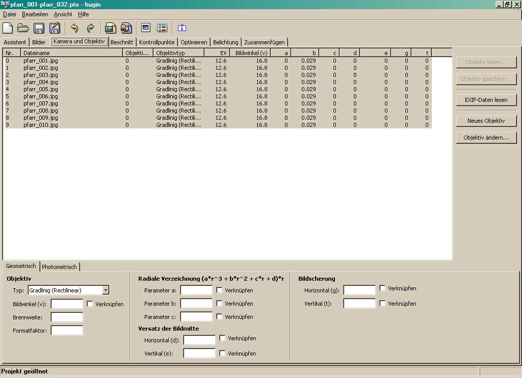 Probleme beim Stitchen mit Hugin - Anfängerfrage?