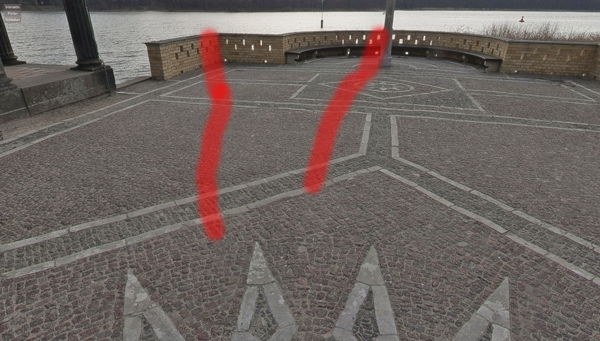 Bei den Wellen wird es sich einfach um handwerkliche Fehler beim Ausrichten des Horizonts handeln, da fehlt mir einfach noch die Übung. Das gegenüber liegende Ufer verläuft leider nicht 90° zur Blickrichtung sondern entfernt sich nach rechts. Eigentlich dürfte man das nicht gerade ausrichten. Tut man es aber nicht, sieht es schief aus.