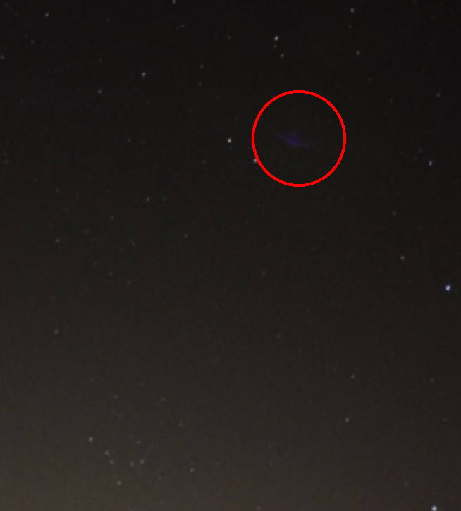 Wenn ich nicht genau wüsste, dass es ein UFO ist, hätte ich es glatt für einen Blendenfleck gehalten, aber der ist noch unwahrscheinlicher als ein UFO.