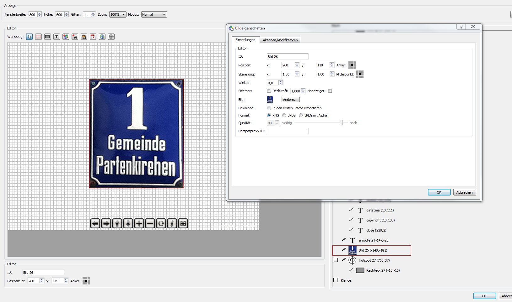 Ich hätte die Idee, das ich z.B. bei folgendem Pano beim Klick auf das Schild im Pano eine vergrößerte Ansicht des Schilds als Bild angezeigt bekomme... (Bild davon ist vorhanden)