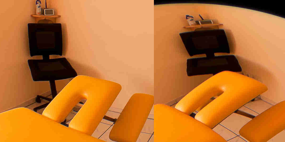 Natürlich kannst du auch ein Objektiv mit längerer Brennweite benutzen, und erzielst dazu noch die höhere Auflösung. Allerdings wird es da schwierig in Räumen mit grossen weissen Wänden oder Decken.