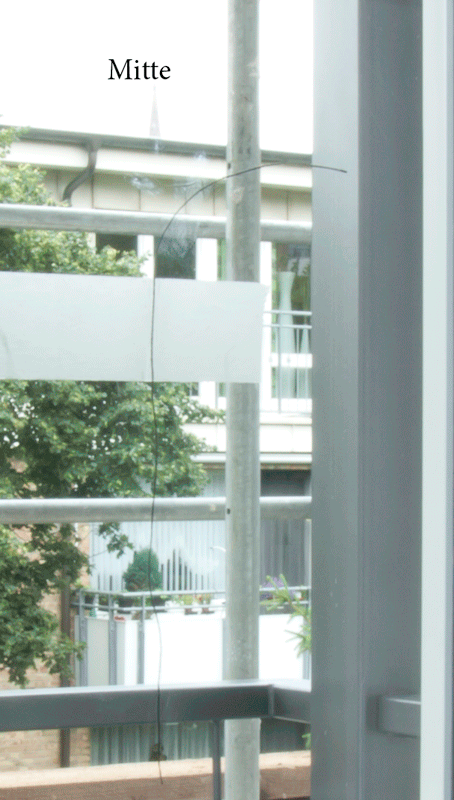 Achja: den Effekt sieht man am besten beim ersten Bild -- das ist ein animated gif, in dem die drei Bilder (Faden in der Mitte des Bildes, Faden am linken Bildrand, Faden am rechten Bildrand) direkt hintereinander abgespielt werden.
