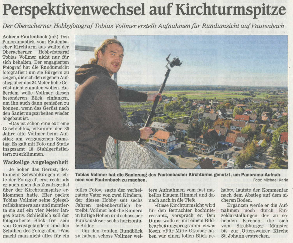 ...in ca. 33 Meter auf dem Kirchturm oben: http://www.360pano.de/kirche_fautenbach/turm1.html