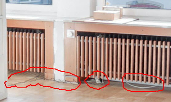Bei den Wänden muss ich erst schauen, was du meinst, die Kabel werde ich heraus nehmen - Danke für den Hinweis!An anderer Stelle bröckeln Boden und Wand, und hinter der Heizung liegt ein ungeplant installiertes Kabel