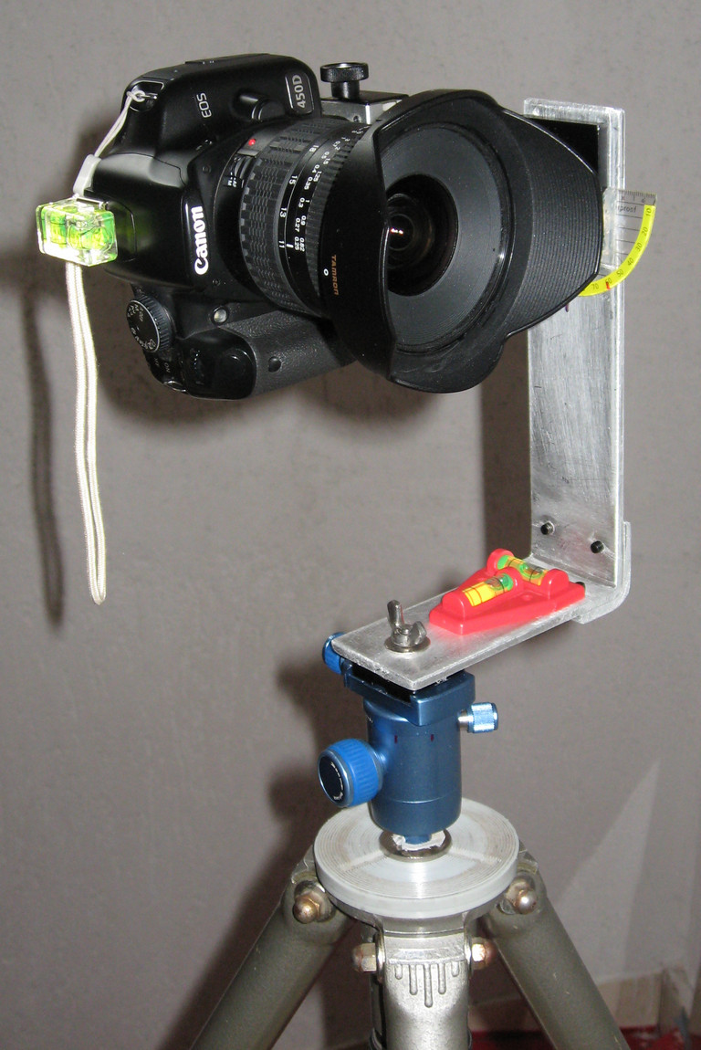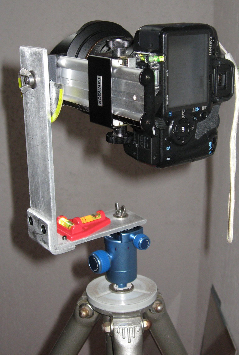 darf nicht sein - ist wichtig das die optische achse des objektivs genau paralell zum vertikalen arm verleuft , damit auch durch drehpunkt.
