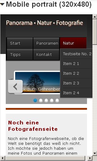 ... Sicherlich ist das Menü nicht perfekt, da sollte z. B. das rechte Submenü von rechts nach links aufgehen um nicht im "Smartphonerand" zu verschwinden....