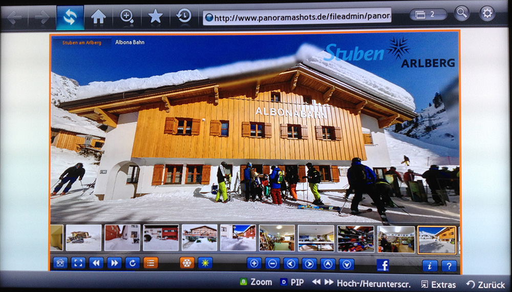 Ich finde , panoramen auf internetfernseher anzuschauen ist eine super idee , habe darüber nicht gedacht , kleine ipads dagegen wirken deprimierend - ich meine die panoramen , schnell vergeht die lust die anzuschauen.