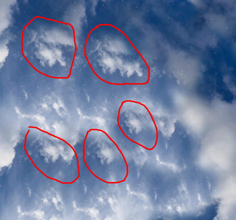 Beim Stempeln des Zenits könntest Du versuchen, die vielen Doppelungen zu vermeiden. Auch unscharfe, milchig-trübe Wolkenränder weisen auf den weichen Stempelrand hin.