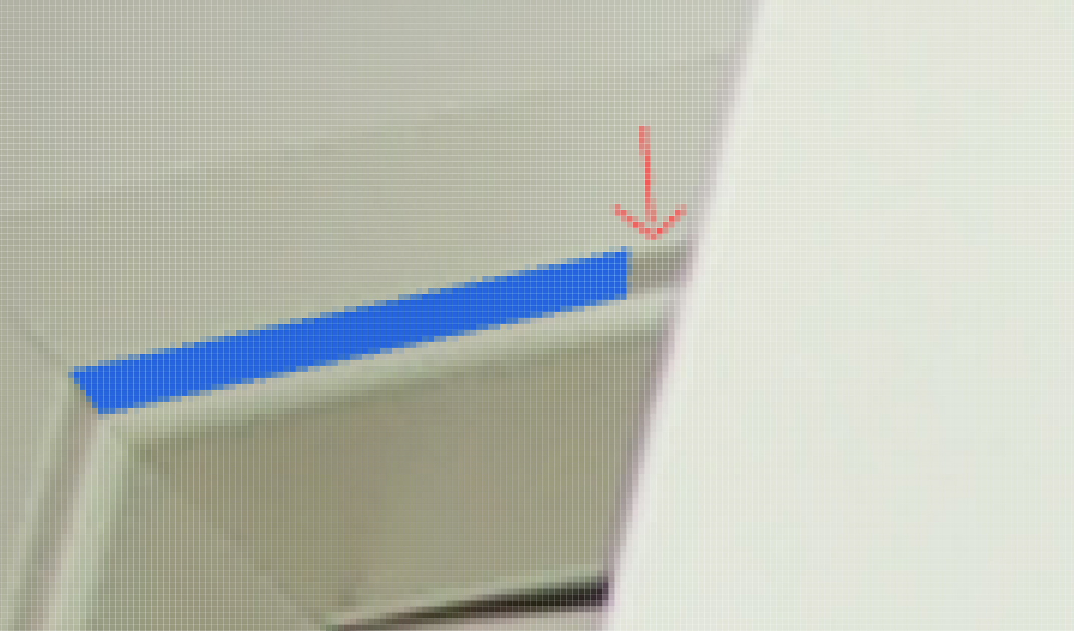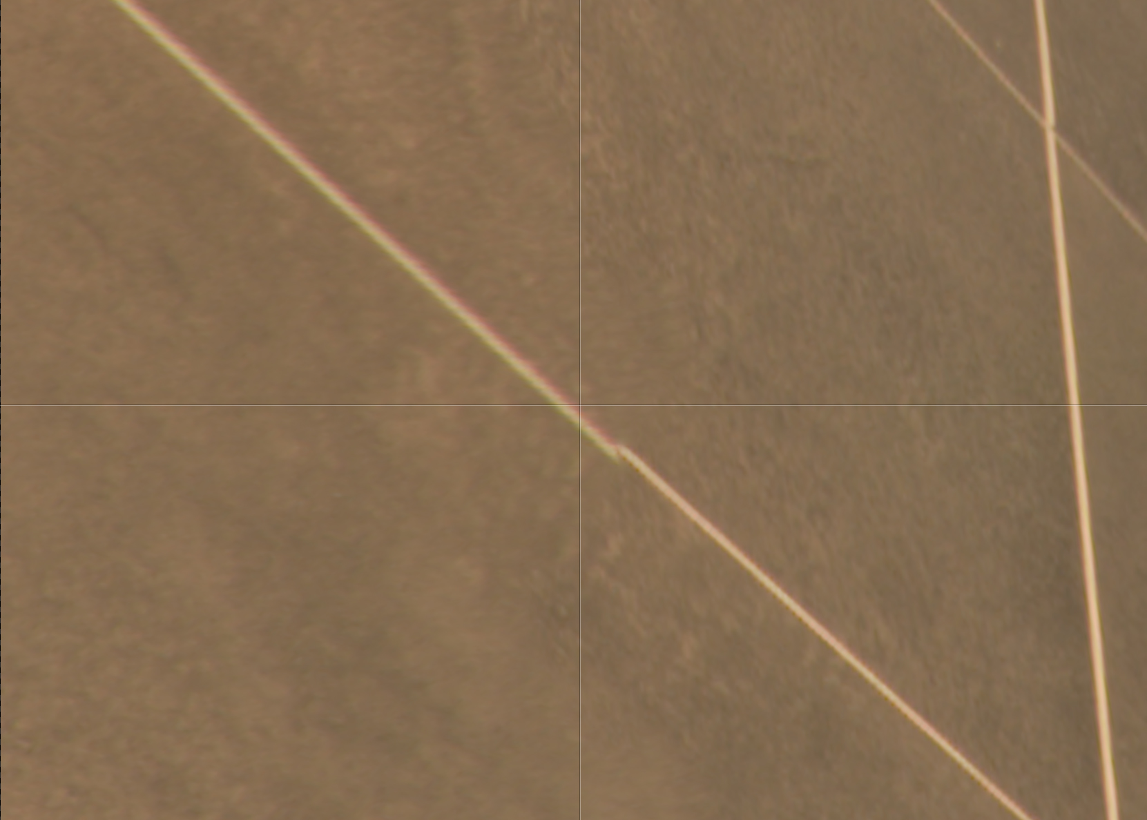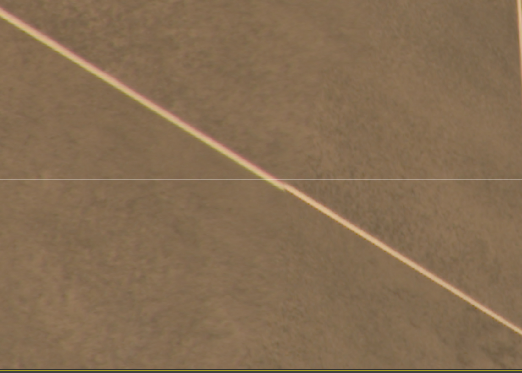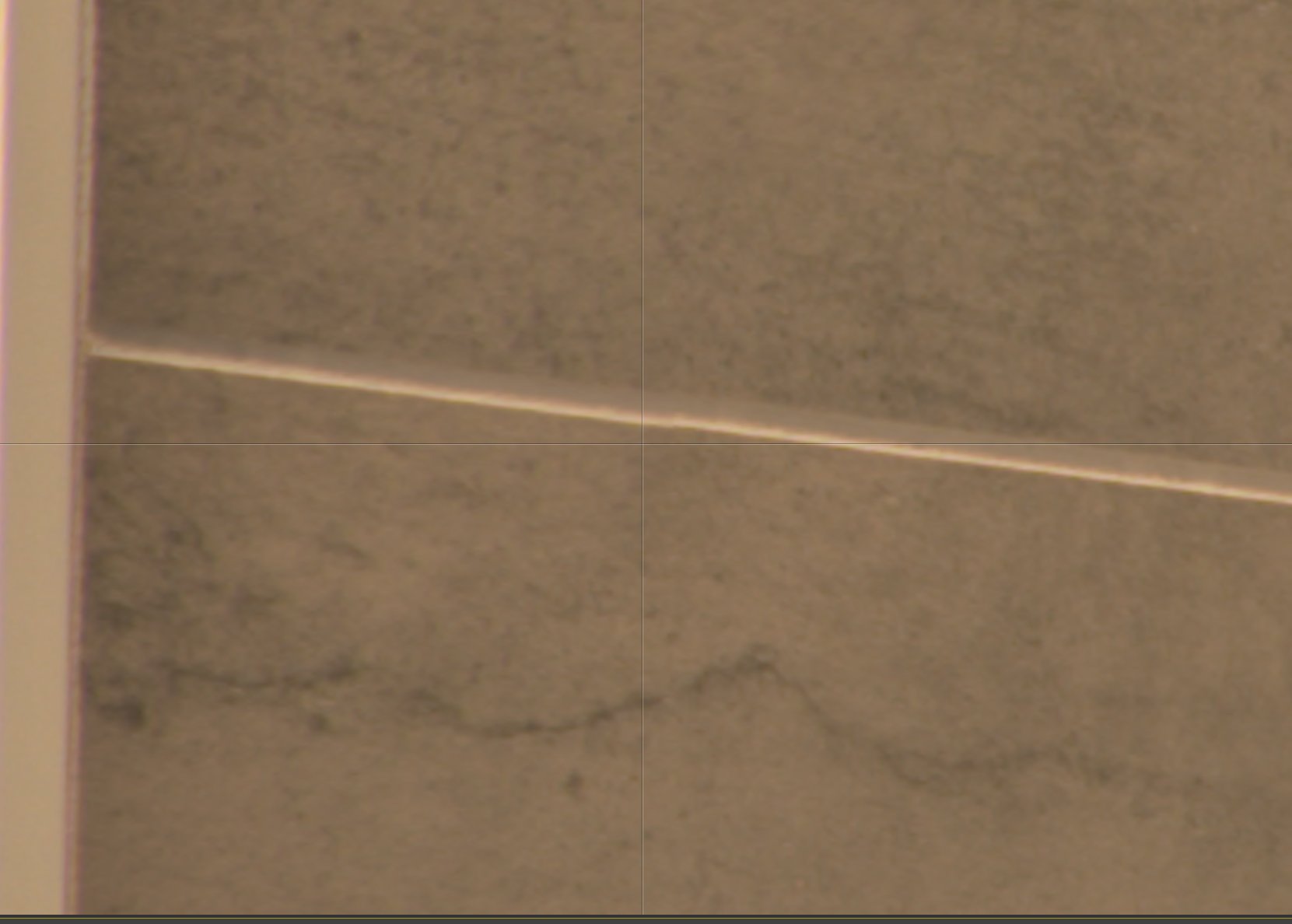 Nun habe ich von Foto 1 den sichtbaren Teil des Rahmens ausgeschnitten und auf einer neuen Ebene bunt übermalt. Diese neue, farbige Ebene nach Bild 2 dupliziert und im gleichen Bereich Positioniert. Hierh habe ich überprüft ob der ausgeschnittene Teil von Bild 1 in Bild 2 past. Nach 3 mal fotografieren war keine Verschiebung mehr zu erkennen. Vielleicht 1PX, aber nur wegen der "verschiedenen" Beugungen im zweiten Bild.