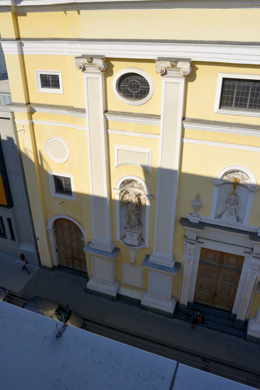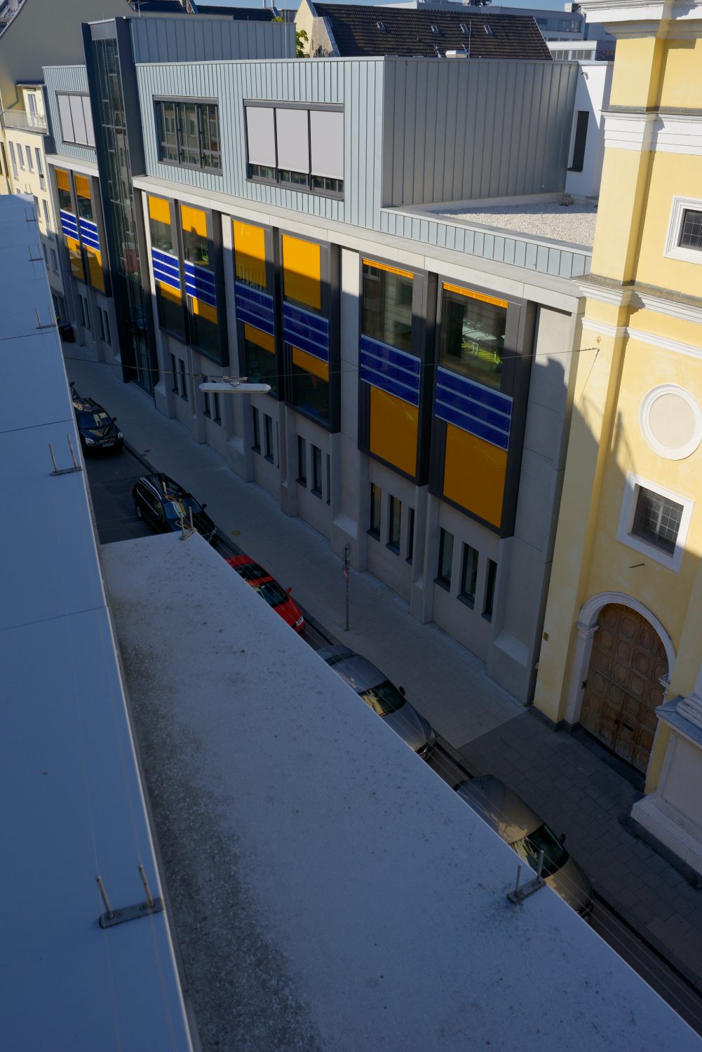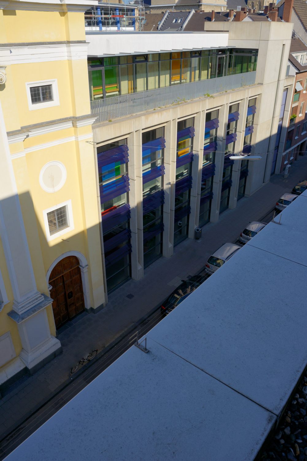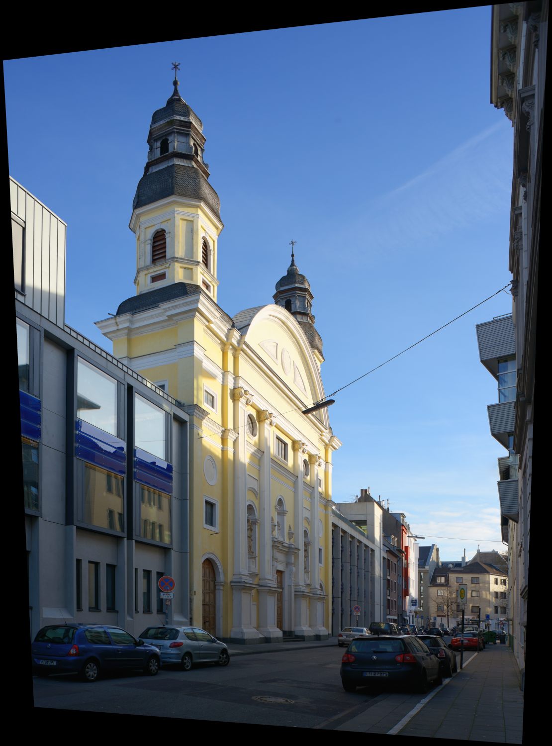 - Der störende Vordergrund (Straße und parkende Fahrzeuge) werden zur Nebensache