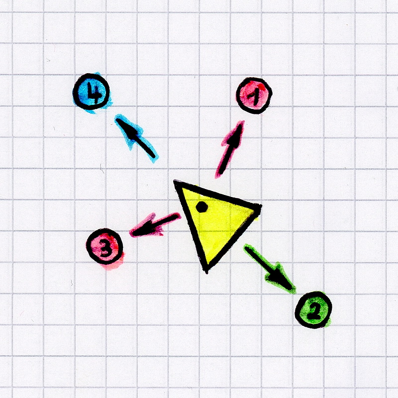 Im gezeigten Beispiel würde Wind in Richtung 2 relativ gut abgefangen werden, aus 4 weniger gut, aus 1+3 schlecht.