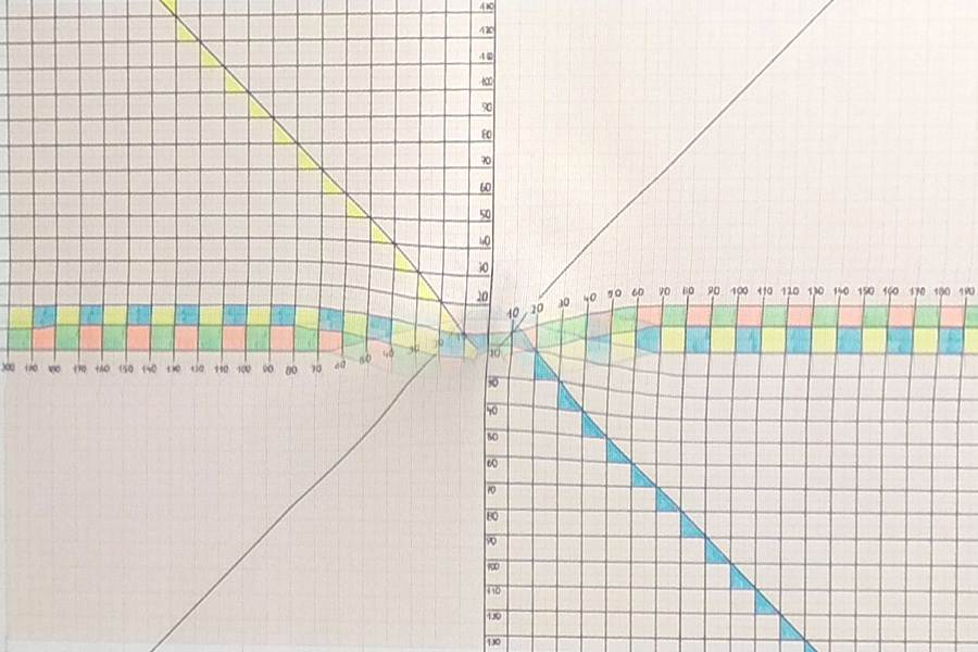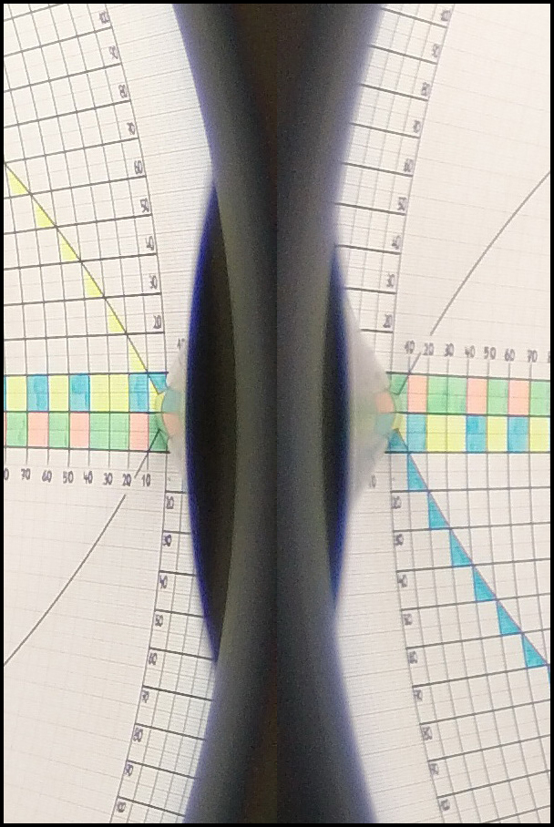 Angenommen wir haben durch Schräglage die Mitte nicht optimal gefunden, dann könnte das z.B. so aussehen: