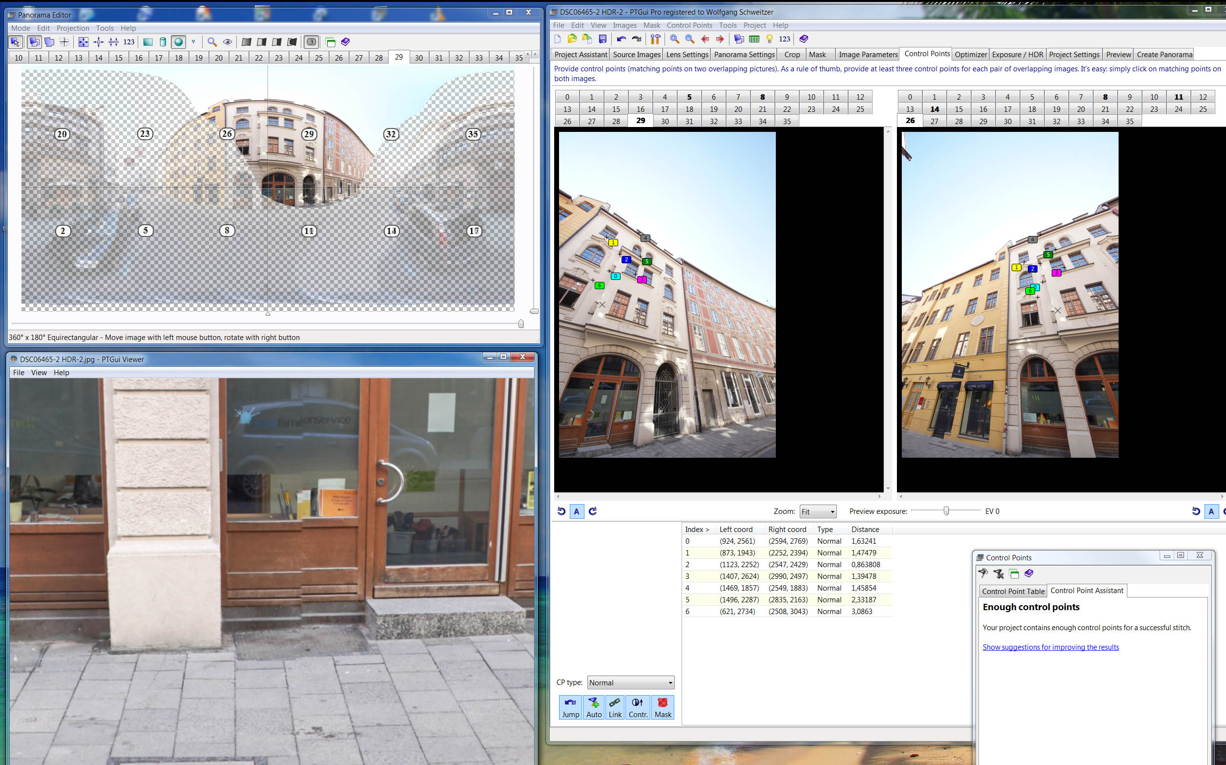 Ich bin sicher, dass Du nur zufällig ein paar fette Nummern angeklickt hast, aber läääääängst nicht alle.... das bringt mir eine andere Frage zurück in Erinnerung: wie lasse ich mir die von PTGui selbst generierten CPs anzeigen? Bei mir sehe ich da fast gar keine. Nur in den Bildern mit fetten Nummern finde ich welche. Andererseits konnte PTGui aus dieser Einstellung ein (HDR-)Pano generieren das gar nicht so schlecht ist, bis auf einige kleine Fehler...