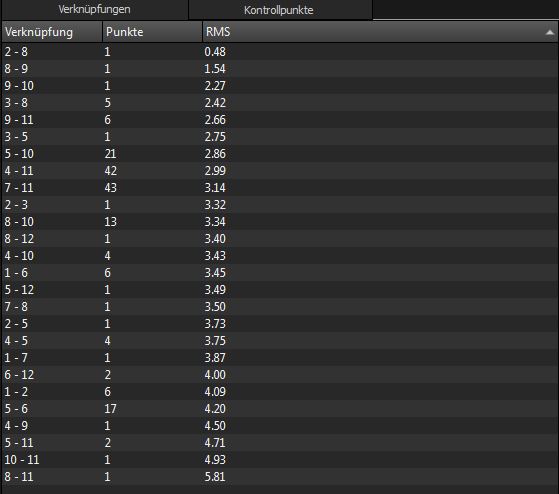 ... größensortierte Punkteliste... Meinst Du die Bilder im Control Points Tab? Und welche Liste? Oder meinst Du den Control Point Table?