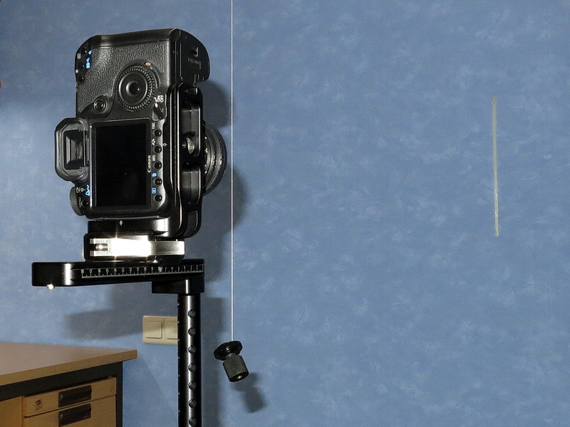 Für ±60° müsste die Kamera bei 8mm Fisch an Crop (analog zu Nobody`s EOS70D) dann aber entlang der langen Sensorseite geschwenkt werden: entweder auf Singlerow-Adapter in Querformat montiert sein oder in üblichem Hochformat per Multirow-Adapter vertikal geschwenkt werden.Apropos: Ich nehme zur Nodalpunkt-Justage zwei senkrechte Linien und drehe den Rotator +/-45° oder 60°
