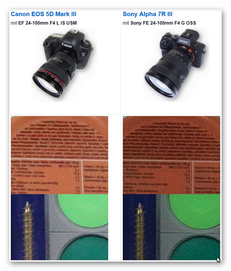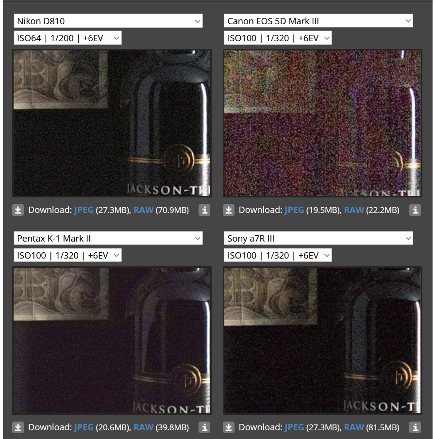 ,,, und habe die 5D Mark III mal bei abenteuerlichen ISO 25.600 mit der D810 und der Sony A7R III verglichen (s. Screenshots anbei). Da ist das Ergebnis genau umgekehrt.