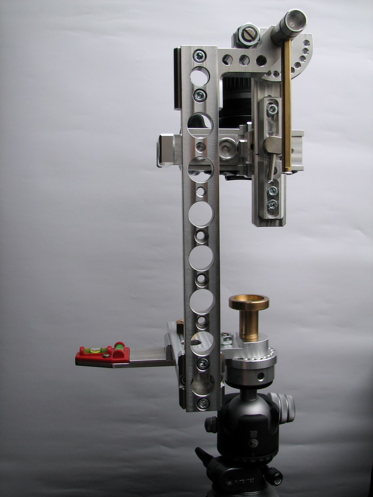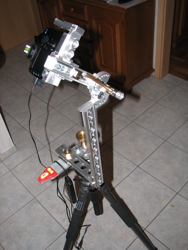 Die Mindesthöhe des Adpters ergibt sich ja aus dem erforderlichen Freiraum beim Schwenk zum Zenit. Mein Grundgedanke, das auf dem Nadirbild unerwünscht abgebildete Stativ so klein wie möglich zu halten (umso weniger muss später wegretuschiert werden), sah einen größeren Abstand zum Stativ vor also plante ich zusätzliche 10cm ein. Dieser zusätzliche Abstand ist durch mehrere Befestigungsbohrungen im Raster variierbar und könnte bei evtl. auftretenden Problemen auf die erforderliche Mindesthöhe eingerichtet werden (siehe Bilder 1+2 im Anhang). Bezüglich Stabilität führte ich keine Berechnungen durch sondern orientierte mich an namhaften Kauflösungen wie z.B. dem NodalNinja, die z.T. eine Materialstärke von 10mm verwenden. Da diese Kauflösungen zahlreicher Forenbeiträge zufolge für gut befunden werden kann man davon ausgehen daß diese korrekt ausgelegt sind. Im Hinblick auf die Hebellänge und aufzunehmende dynamische Belastung z.B. durch meine Rastungen wählte ich daher eine Materialstärke von 12mm. Das Endresultat deckte sich letzendlich mit meinem "Bauchgefühl" aus mehrjähriger, praktischer Berufserfahrung im Metallbereich. Bei dynamischer Belastung (z.B. durch Fingerdruck) federt das gesamte System tasächlich ein wenig, allerdings führe ich das größtenteils auf die mE schwache Schnittstelle des Stativs (Verbindungsstelle des Senkrechten Rohrs mit dem Aufnahmeteller + Kameragewinde,siehe Bild 3) zurück. Auswirkungen in Form von Verwackelungen durch den Druck beim Betätigen des Auslösers konnte ich bei zahlreichen Außenaufnahmen bislang noch nicht feststellen. Ein spürbares Aufschwingen durch das Klappen des Spiegels kann ich durch die robuste Bauweise und die damit verbundene Masseträgheit ebenfalls ausschließen.