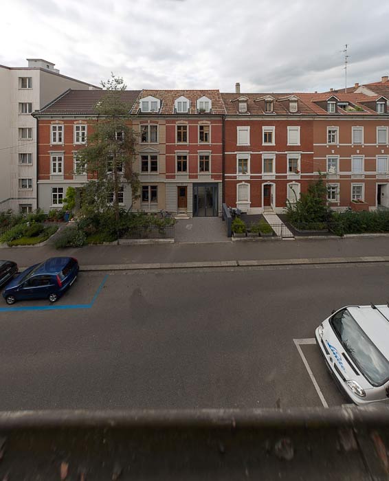 Im Anhang ein 2-Reiher aus dem dritten Stock, mit je 3 Aufnahmen, 3 x 0 und 3 x - 40; bei den gegenüberliegenden Häusern sieht man gut die zurückgesetzten Gauben, welche solche Hilfsmittel erfodern...