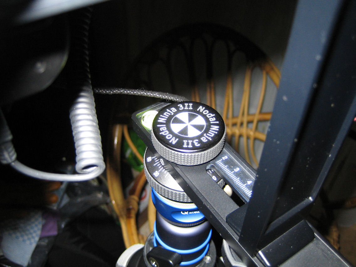 c) After the larger NN3 knob is tightened, tighten the inner (silver) lock screw with a screw driver or coin). This "locks" the tension of the rotator knob and it should not unscrew. You might have to do this a couple times to get the proper feel. Double check the tension against the click stop feel and readjust as needed. If the unit still has a tendency to unscrew try placing an extra Teflon washer (included with each NN) under the rotator knob (with Nodal Ninja markings) and repeat above steps. Proper tightening should enable the user to find a friction point that you feel comfortable with. This is actually a customizable option.