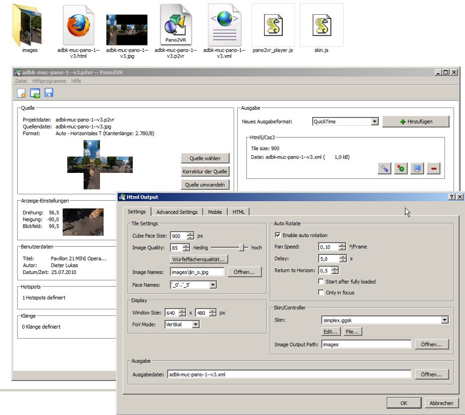 - Die links-rechts-Buttons sind invertiert. Das ist allerdings ein allgemeiner Bug, ist bei meinem Pano auch so. Auch bei drehenden Radar-Bereichen ist die Drehrichtung invertiert und zusätzlich ist der auf einer Übersichtskarte angezeigt Startwinkel anders als bei der Flash-Ausgabe.