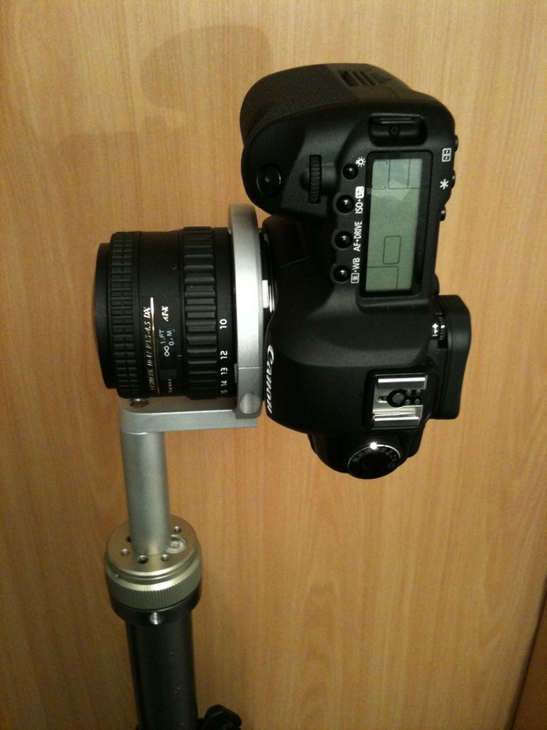 Kurze Zeit später hatte ich dann die, für meine Zwecke, beste Einstellung gefunden. Ich nutze nun die 12er Rastung, überspringe also 2Rastungen bei den Drehungen. Die Entscheidung für die 12er Rastung hat folgenden Grund: Die Federschraube der 8er Rastung liegt im Innenradius, die 12er Rastung dagegen mehr im Außenradius des Minirotors. Dadurch ist die 12er Rastung, wegen der günstigeren Kraftverteilung, direkter. Es klickt da richtig und die Kamera sitzt schnell in ihrer Position. Hört sich jetzt vielleicht schlimm an, 2 Rastungen bei den Aufnahmen auszulassen. Mich persönlich stört das nicht. Ich bilde mir sogar ein, damit schneller zu sein, weil ich mich besser an die 90°Rastung "herantasten" kann. Das muß natürlich jeder für sich selbst ausprobieren. Ideal wäre auch ein Minirotor mit einer 4er Rastung im Außenradius. Aber das ist momentan wohl eine Sonderanfertigung ;-).