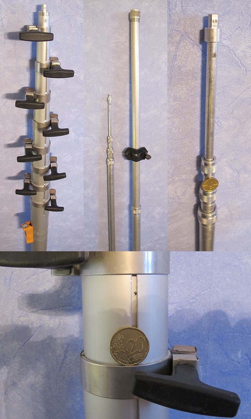 Falls man mehr Gesamtlänge als 4m90 braucht, muß man als Verlängerung ein 2mm starkes Rohr mit 35mm ∅ finden, wo die 30mm gut reinpassen (Innenplastikring füllt die 1mm Luft). Falls 19mm Segment zu dünn, muß man die Segmente mit 35 - 30 - 25 - 22 mm bauen. Fragt sich, wieviel Gewicht dabei obenauf kommt.