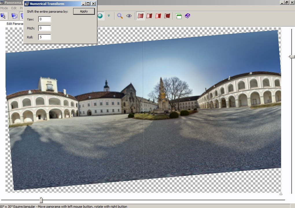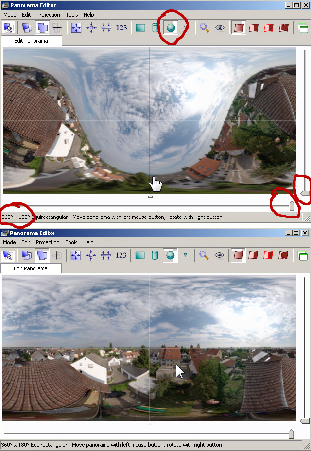 Dann geh in den Panoramaeditor und ziehe die Winkelbegrenzer bis ganz nach rechts bzw. nach unten (360 x 180°)