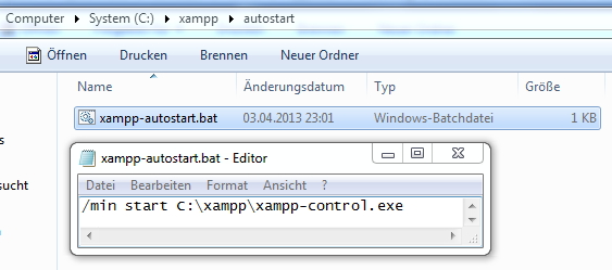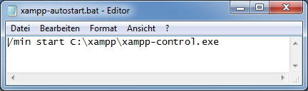 2. Eine *.bat Datei irgendwo (z.B. xampp Ordner anlegen) (Name z.B. autostart.bat)