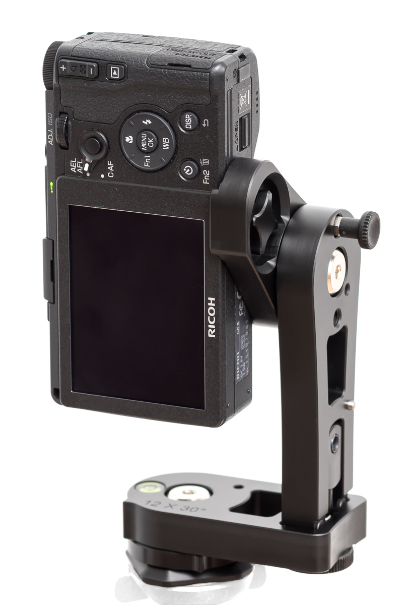 Die vertikale Rastung von 48° ist auf einen vertikalen Überlapp von ca. 30% ausgelegt. Wenn man mit weniger vertikalem Überlapp leben kann, kann man auch eine Zwischenposition weiterrasten (das wären dann 60° Schwenkwinkel und ein Überlapp von nur ca. 10%). Das bringt für ein vollständiges Kugelpanorama nichts (man spart sich nur das Zenitbild auf Kosten von potenziellen Stitchingfehlern), aber wenn man mal in der Vertikalen etwas weniger Bildwinkel benötigt, kommt man dann u.U. auch mal mit nur 2 satt 3 Reihen aus (z.B. eine Reihe bei -24° und eine Reihe bei +36° ergibt schon einen Gesamtbildwinkel von 360°x125°).