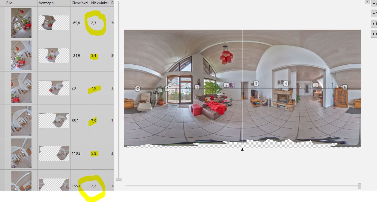 D.h. wenn der Nodalpunktabstand für den Äquator optimal eingestellt ist, kann das Pano am Pol nicht sauber stitchen.
