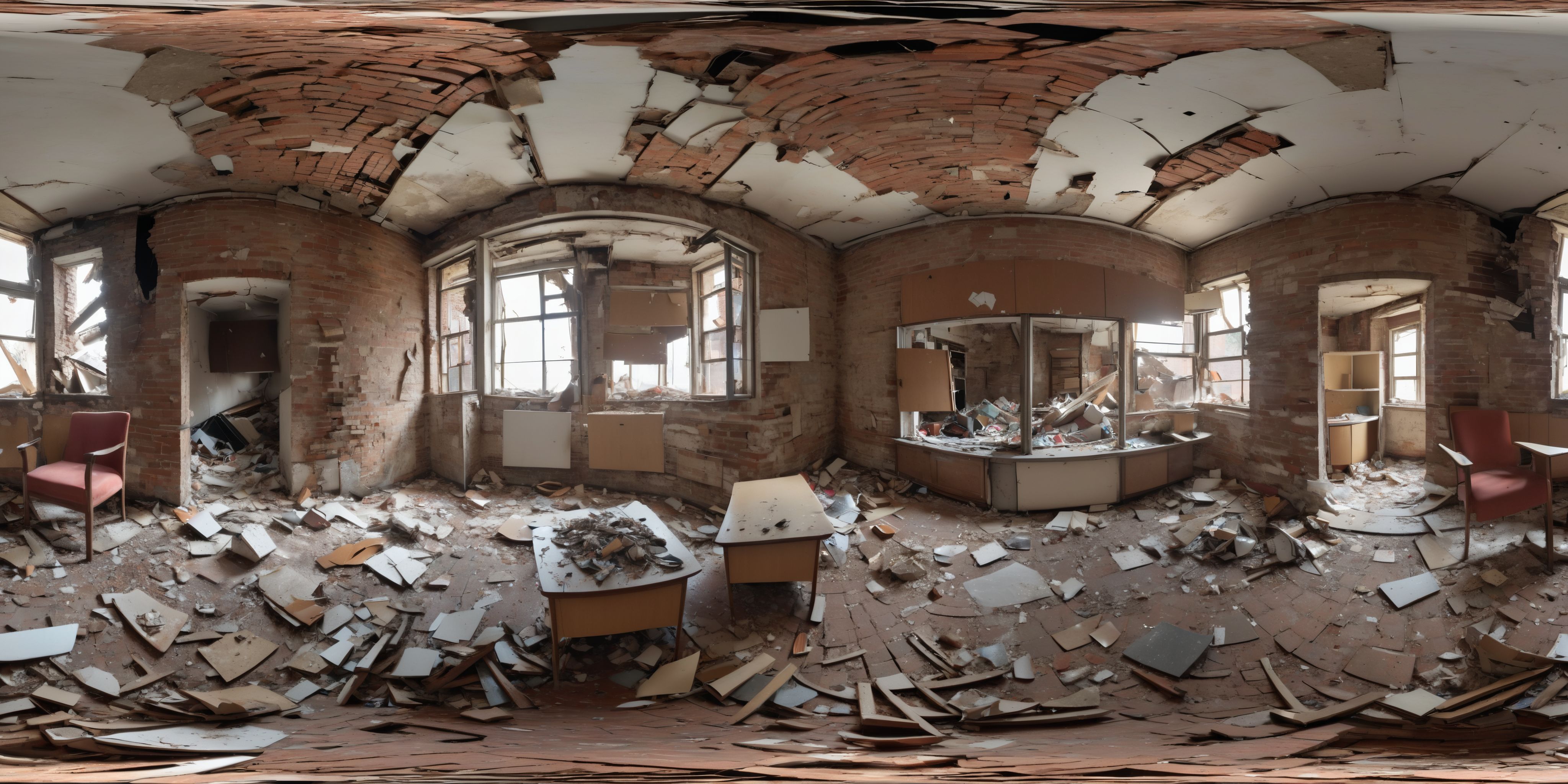 An ancient cellar vault, laboratory, (((a man with white, tangled hair, wearing a white lab coat with a green apron, holding a glass jar from which purple smoke is pouring))), tables, shelves, test tubes, vials, Bunsen burners, flasks, jars, vials, bags and jars made of colored glass, clay, metal, granite, soapstone, precious stone, marble, leather, boxes and boxes with ingredients, colored liquids, powders, hand scales with weights, mortars, various spoons and spatulas, apothecary scoop, glass vessel or pot for cooking, bowl, stand, stirring rod, separating funnel, filter, funnel, sieves, pipettes, a small board and knife, herbs, small pan, smoking spoon, melting ladle, distillation apparatus, glass flask with distillation bridge or reflux condenser, copper still, retort, writing utensils for notes, a small rechaud, teapot, spirit burner, trivet, coaster, cleaning brushes, cloths, hourglasses in various sizes, small bowls, skulls, human skulls with candles on them, animal skulls, shells, gemstones, minerals, documents and books, candles in candlesticks, Lamps, lanterns, mathematical devices, drawing instruments, globe, obscure devices, magnifying glass, a still, pickled animals/organs, eerie lighting mood, gloomy, little illumination, wide angle camera, 360 degrees realistic equirectangular panorama photo,8k, high resolution, photo realistic, rich colors,