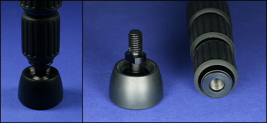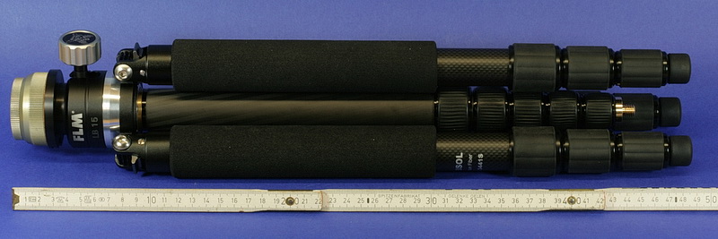 für die Gewindebohrung hat sich heute ein anderer recht praktischer Zweck gefunden. Mit der Adaption auf den größeren Außendurchmesser der FLM-Nivellierplatte hab ich mir Feisol`s Option verbaut, die Beine über die Mittelsäule zusammenklappen zu können.