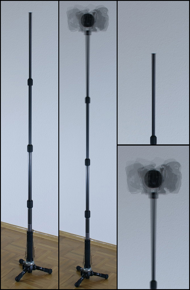 2. So kleinen stativ mit langer seule muss auch am boden ziemlich genau nivelliert werden... in der natur, wo boden selten eben ist, sollte man stativ nivellieren .