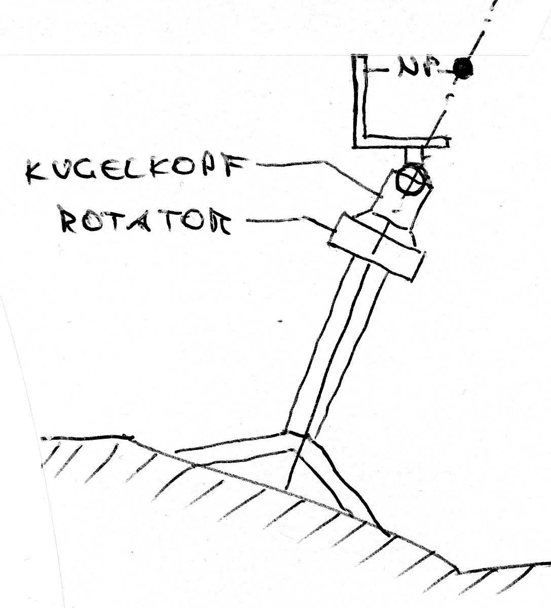 Ein anderes Thema mit möglicherweise großem Fehlerpotenzial ist z.B. auch der Freiheitsgrad zum Schwenken bei Deinem Standspinnenteil. Auch deswegen wären Seitenansichten Deiner Kombi interessant. Wo oder wie schwenkst Du eigentlich? Hat deine Standspinne einen integrierten Rotator oder so was wie ne Panoplatte zum Drehen oder machst Du das über einen aufgesetzten Kugelkopf?