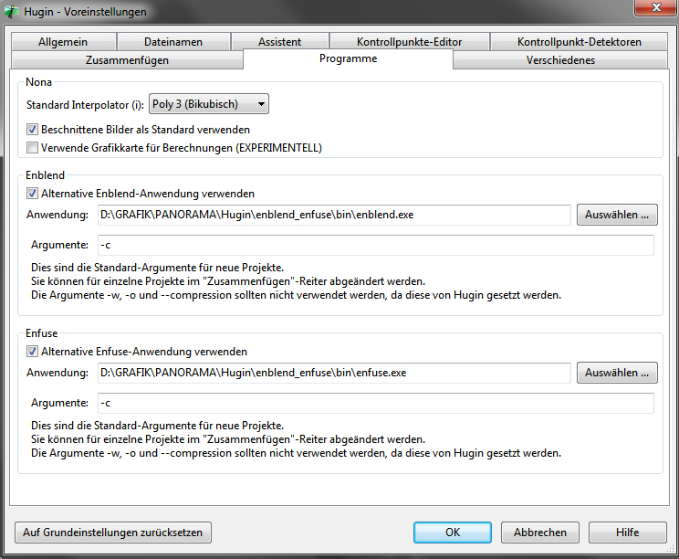 Ich habe mir enblend und enfused von deinem Link geladen. Wie wird das nun genau eingebunden? Einfach die benötigten Dateien in das entsprechende Hugin-Verzeichnis kopieren? Jedenfalls bringt mir Hugin einen Abbruch beim zusammenfügen der Bilder?