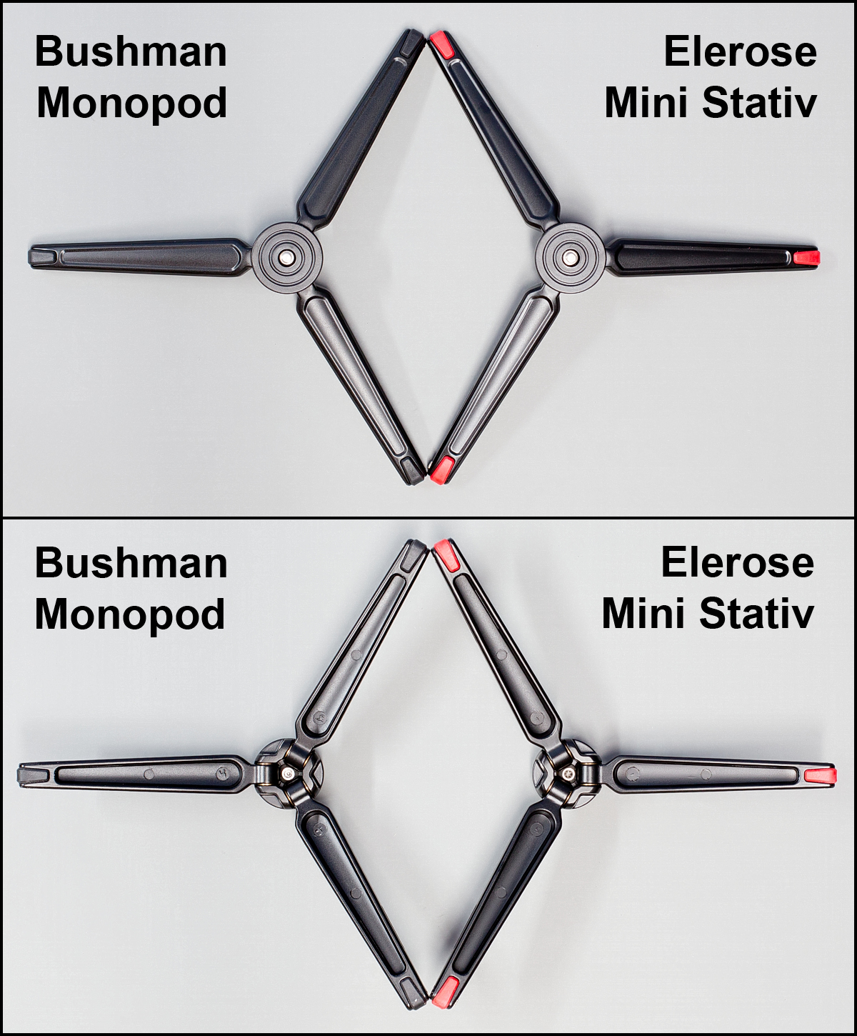 Auch könnte man die Beine unterschiedlich weit ausziehen, wodurch man Schräglage auch ein Stück weit ausgleichen kann."