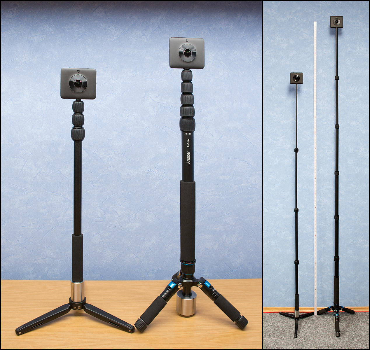 Habe an beiden Stativen bei Vollauszug und aufgesetzter Mijia den Schwerpunkt ermittelt und markiert, jeweils mit- und ohne Gewicht.